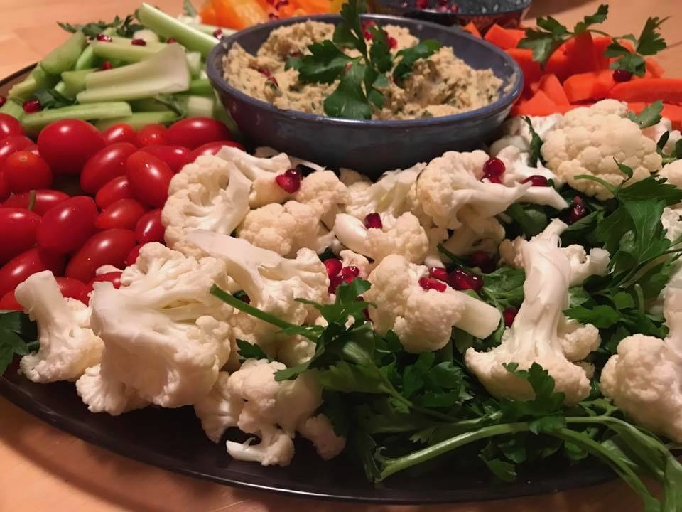 Whether in a salad or on a platter pomegranate seeds add color, flavor, and interest. Best part? Way less calories and sugar than store bought dried cranberries, and zero points for our weight watcher friends.